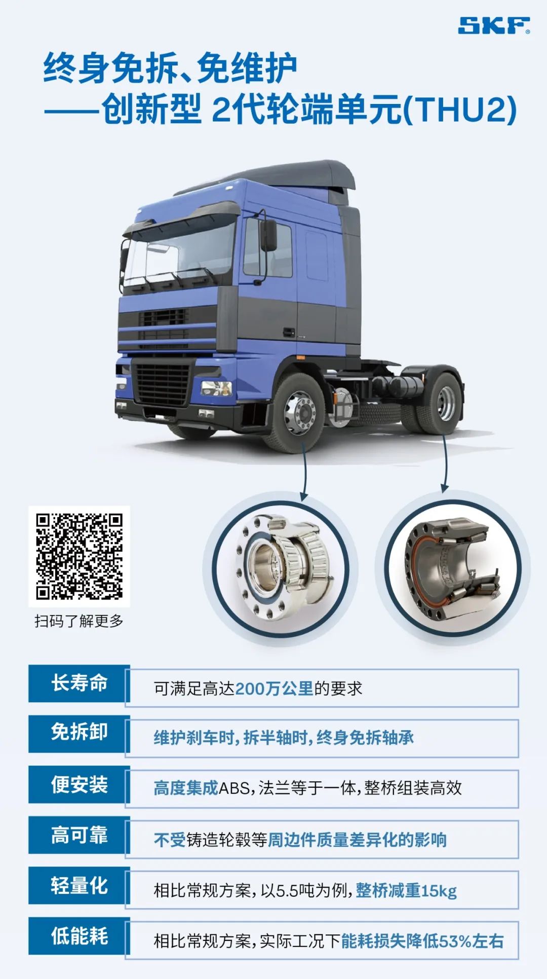 在未來,您將看到更多像斯凱孚2代輪端軸承單元(THU2)這樣的高品質產品和服務出現在商用車領域,推動整個行業向更高效、更安全、更可持續的方向發展。